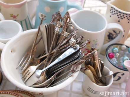 ガシャっとおかれた不揃いのカトラリーもいいね。